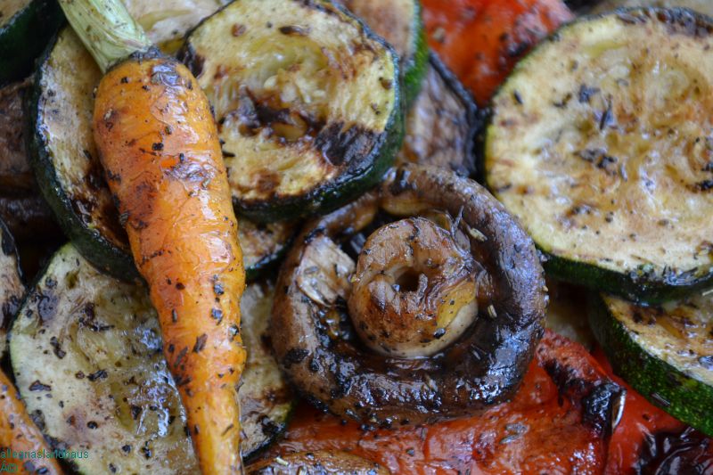 Es gab Gemüse vom Grill: Auberginen, Zucchini, Paprika, Champignons und Möhrchen. Letztere aus eigenem Anbau. Natürlich hatte ich mich mal wieder in der Menge verschätzt und was übrig war, wanderte in der Frischhaltedose in den Kühlschrank um am Sonntag noch besser zu schmecken. Da brauche ich wirklich kein Fleisch, wenn Gemüse so gut schmeckt.