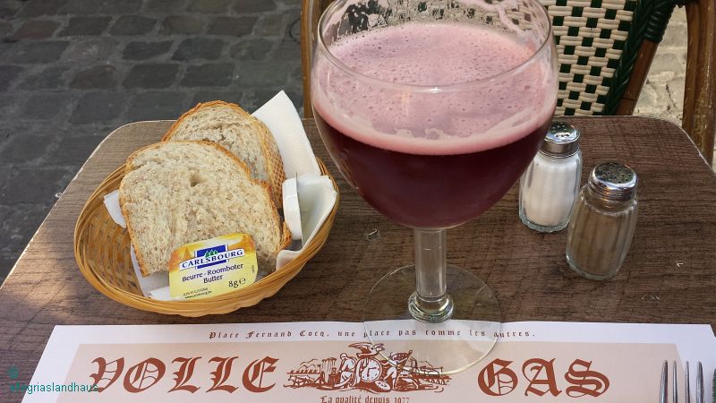 In den Ixelles hatte ich mir ein Restaurant ausgesucht, das Volle Gas. Mein Reiseführer empfahl Kaninchen in Kriekbier. Dazu habe ich mir dann noch ein großes Kriek zum Trinken bestellt und schön blöd geguckt, als meine Bestellung kam. Kriek ist Kirschbier. Aber total lecker und am Samstag habe ich die Variante mich reichlich Eiswürfeln getrunken. Ein wundervolles Sommergetränk allerdings eher für Frauen als für Männer.