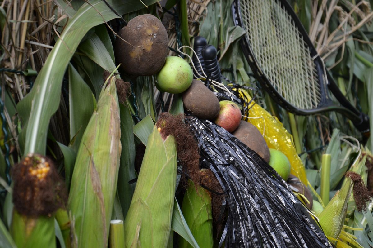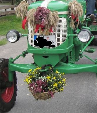 Eines vorweg: ich habe unendlich viele Fotos gemacht aber Ihr bekommt hier nur unverfängliche Ausschnitte zu sehen, mit denen ich hoffentlich keine Persönlichkeitsrechte verletze. Der Umzug an sich war zwar etwas Öffentliches, ich bin aber nicht sicher, ob das Fußvolk und die „Schauleute“ am Straßenrand hier so gerne erscheinen wollen. Im Ganzen war es ein Umzug mit 21 prächtig geschmückten Wagen, gezogen von neuen und alten Traktormodellen.