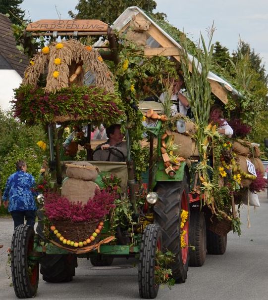 Bei uns im Ort gibt es einen schönen Brauch. Alle 2 Jahre organisiert der örtliche Heimatverein einen Ernteumzug.