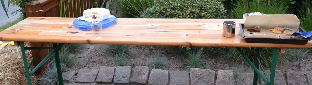 Nun, unsere Nachbarn von gegenüber hatten das Heft für unseren Abschnitt in die Hand genommen und wir trafen uns dort eine Woche vor der Veranstaltung, um zu besprechen, wie wir vorgehen wollen. Danke an Helma und Alex für den Anstoß und an Lars und Ilka für das Zurverfügungstellen ihres Vordergrundstücks als „Partymeile“!