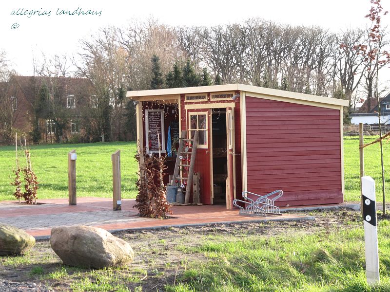Der Unterstand wurde von netten Zeitgenossen farblich „verschönert“.