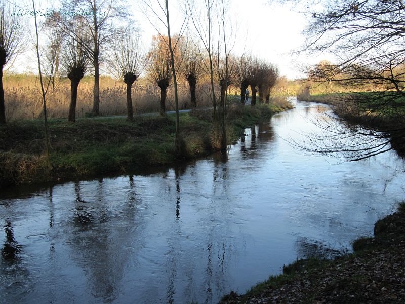 Bei Kilometer 2 mäandert der Heiligenroder Klosterbach fotogen vor sich hin zwischen Feuchtwiesen die von Highlandrindern gepflegt werden.