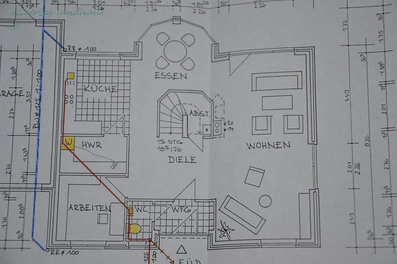 Im Nachhinein muss ich sagen, das war keine so richtig gute Idee und besser wären zumindest mehr Wandauslässe gewesen. Davon gibt es in der Diele grad mal einen und im Wohni auch und das ist entschieden zu wenig. Aber nun ist es mal so und nach hinten und vorne durchgeschaut, kein Loch in der Decke…