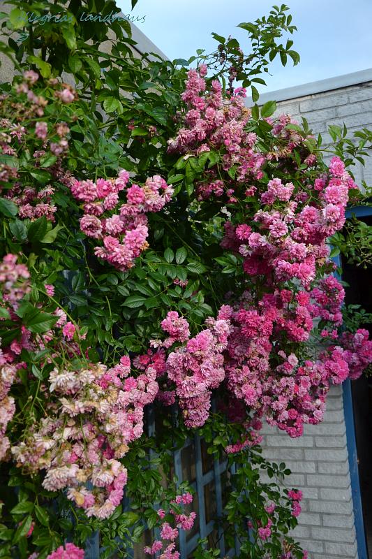 An der Garagenwand stehen 2 Kletterrosen. Links die Maria Lisa, die ist schon mit der Blüte durch und rechts Super Dorothy, die ihrem Namen alle Ehre macht, auch wenn die Blüte dem Ende zu geht.
