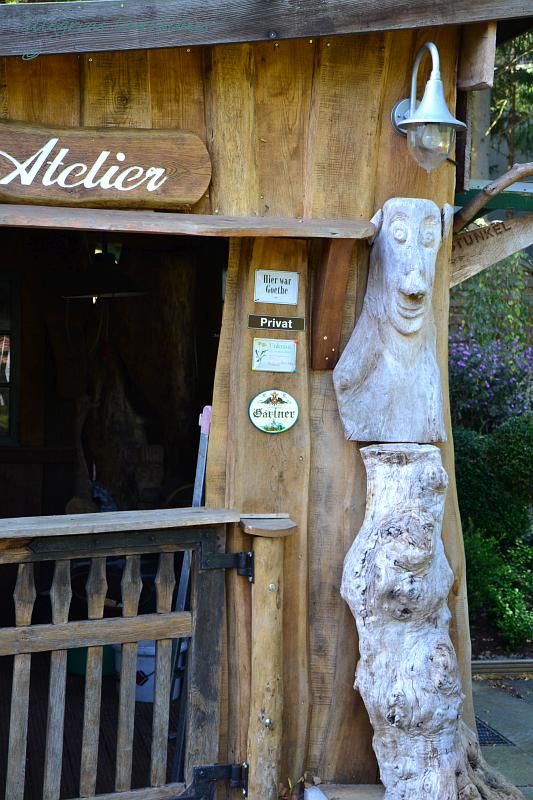 Oben der Eingang zum fantastischen Besucherraum, unten ein auf ungewöhnliche Art präsentiertes Foto der beiden Erschaffer des Paradieses, Horst und Hilde Stünkel. Unterstützt werden sie von 2 Töchtern, dem Schwiegersohn und den Enkelkindern.