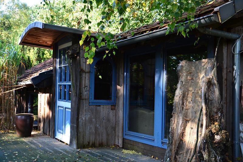 Es gibt sogar ein richtiges Waldhaus! Mit Besuchertoilette, sehr schön, dann muss man die fremden Besucher nicht ins Haus lassen.