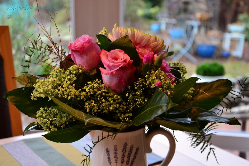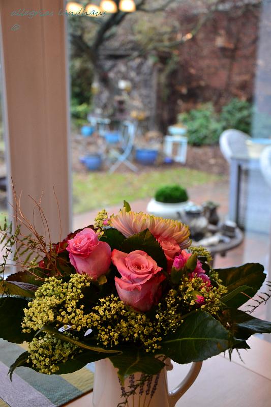 Der Strauß steht auf der rechten Hälfte unseres Esstisches, damit ich meine Zeitung links noch ausbreiten kann 😉