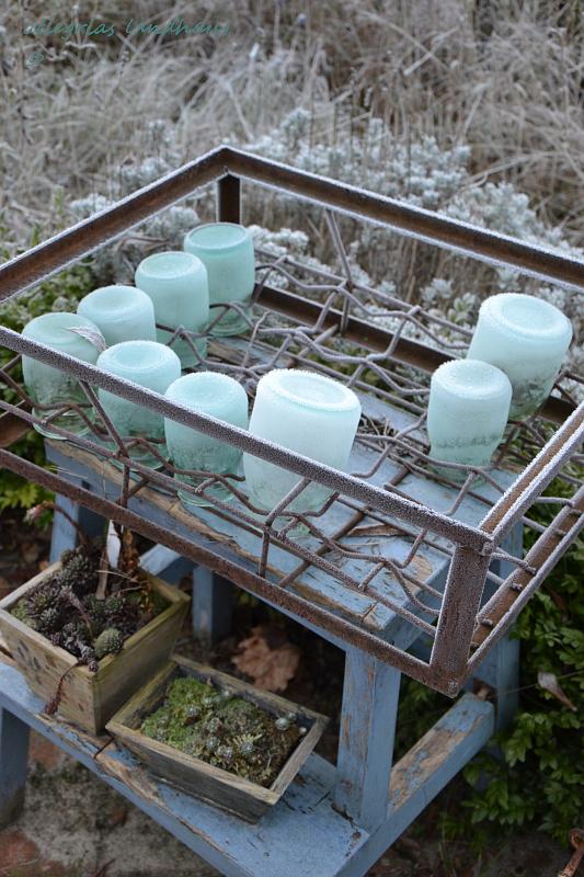 ist das nicht ein bisschen weit von der küche wenn man mal ´ne kelle braucht??? :-Phier waren die letzten 3 tage auch eisig – aber heut mittag ists aufgetaut mit viel regen. ich hab mich sehr über die vom frost verzauberten stauden gefreut. zum glück hatte ich schon alle frostbeulen reingeräumt!stay warm! xxxx