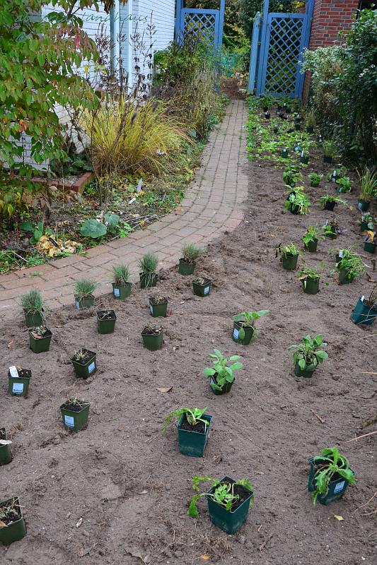 Hatte ich nicht kürzlich noch geschrieben, das nur Zwiebelpflanzen jetzt noch ins gerodete Westzaunbeet kommen und die Stauden und Gräser erst im Frühjahr folgen?